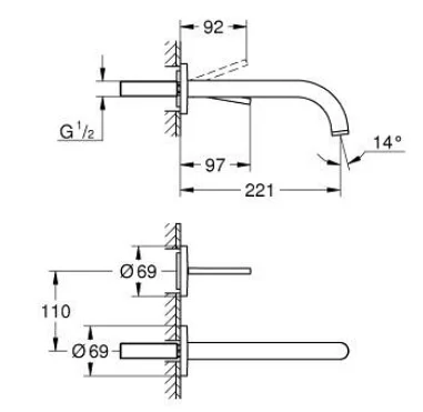• Merkezler arası uzaklık 110 mm